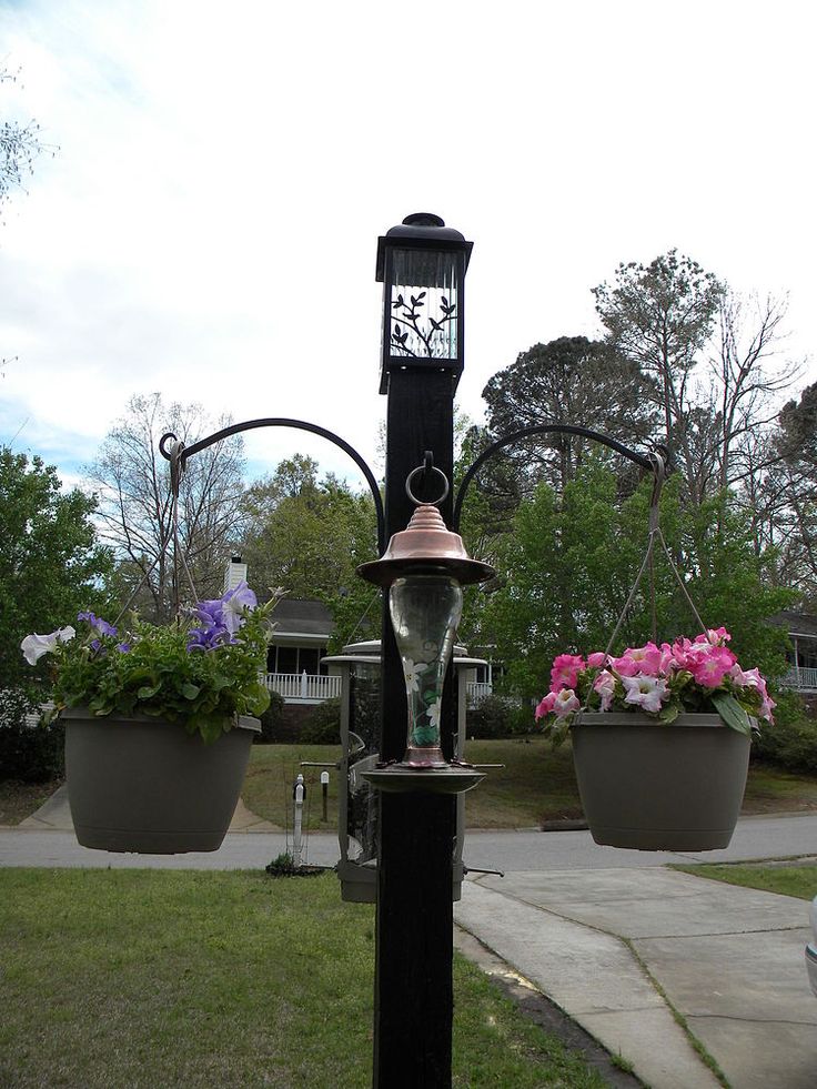 Build your yard a freestanding Bird Feeder and Flower Post With a light.
